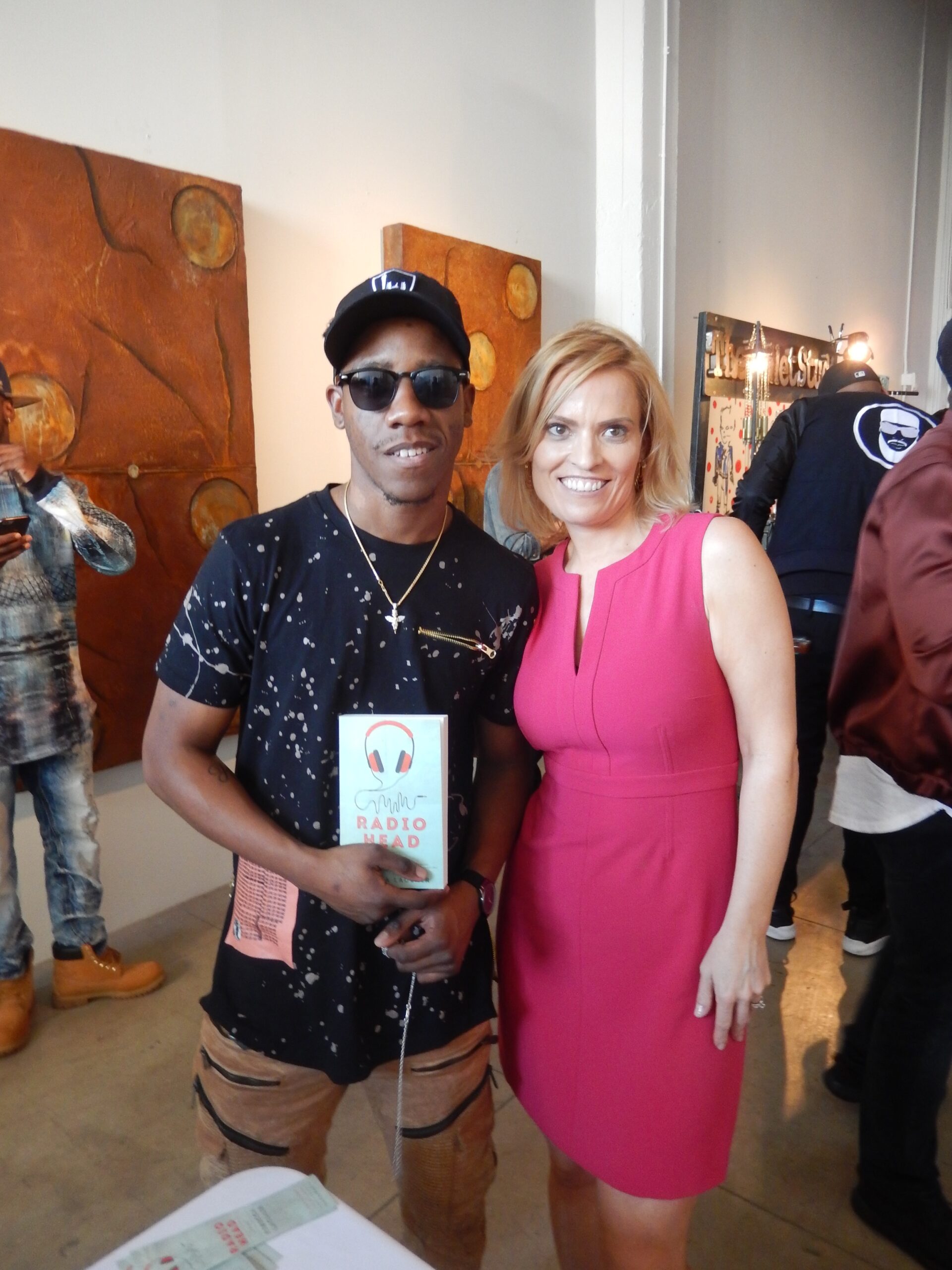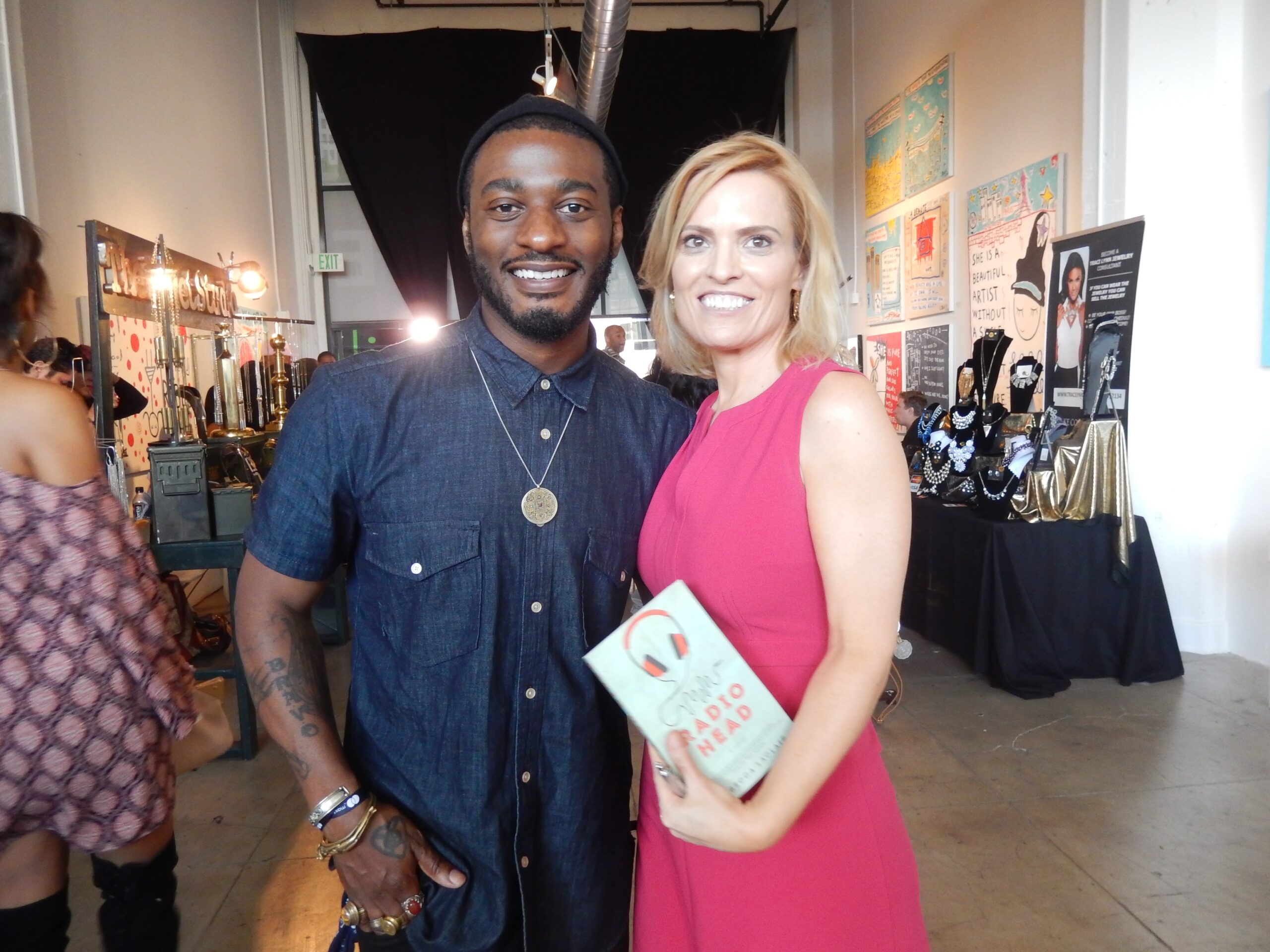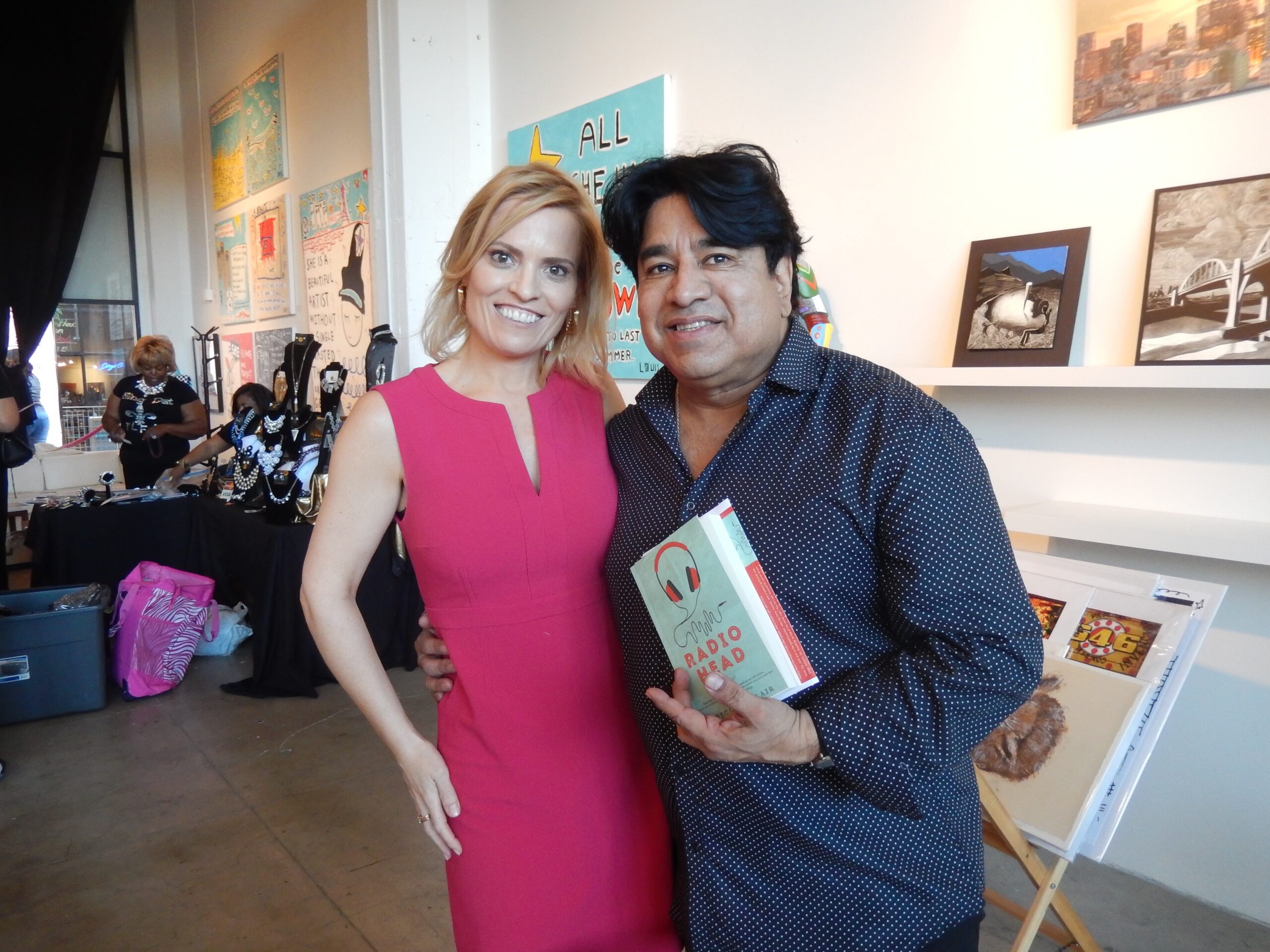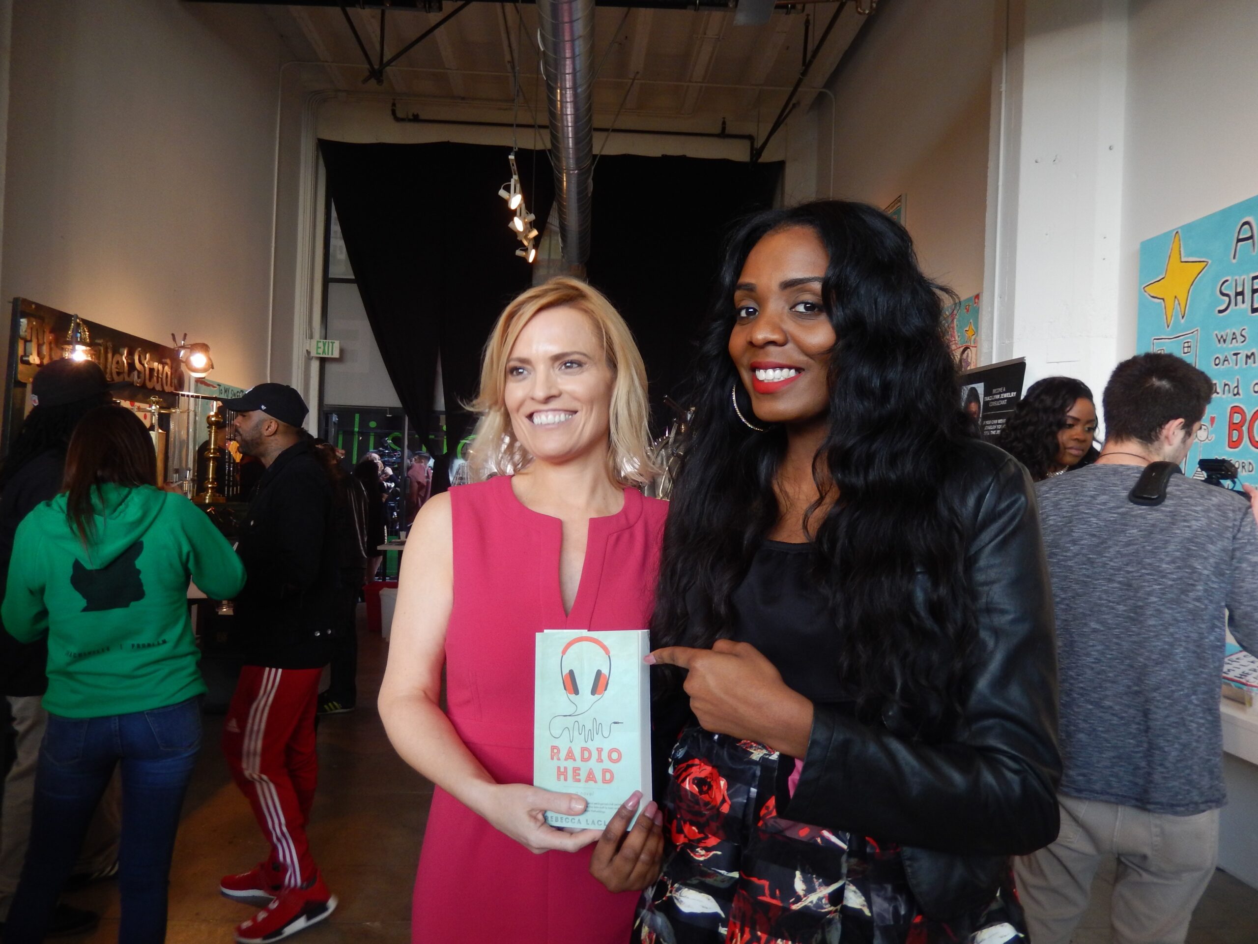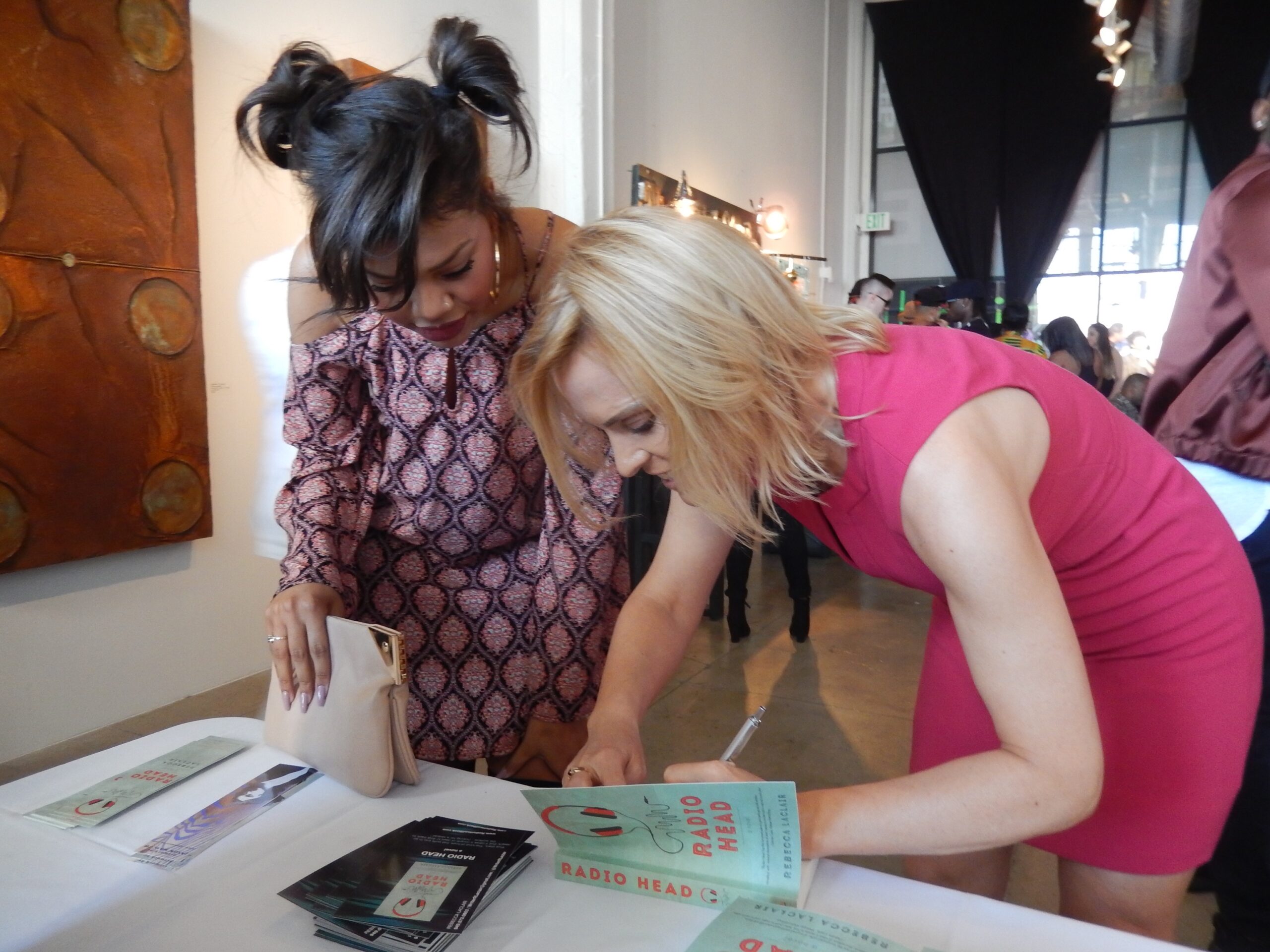 Who is the ideal audience for a novel offering an insider’s look at the dark reality of the LA rock music scene? Music fans in LA, of course! To celebrate the 2017 Grammy Awards, I had the honor of presenting my debut book, Radio Head, to Grammy nominees, recording artists, music press, producers, and a fascinating group of actors, fashion designers, artists and models. Hosted by European TV host Nana Churcher, the high energy event was held at REN Gallery in downtown Los Angeles on the eve of the awards ceremony. My pen name appeared on the backdrop of the red carpet – how cool is that?! The DJ kept the music pumping, and the vibe was positive. My dear fri