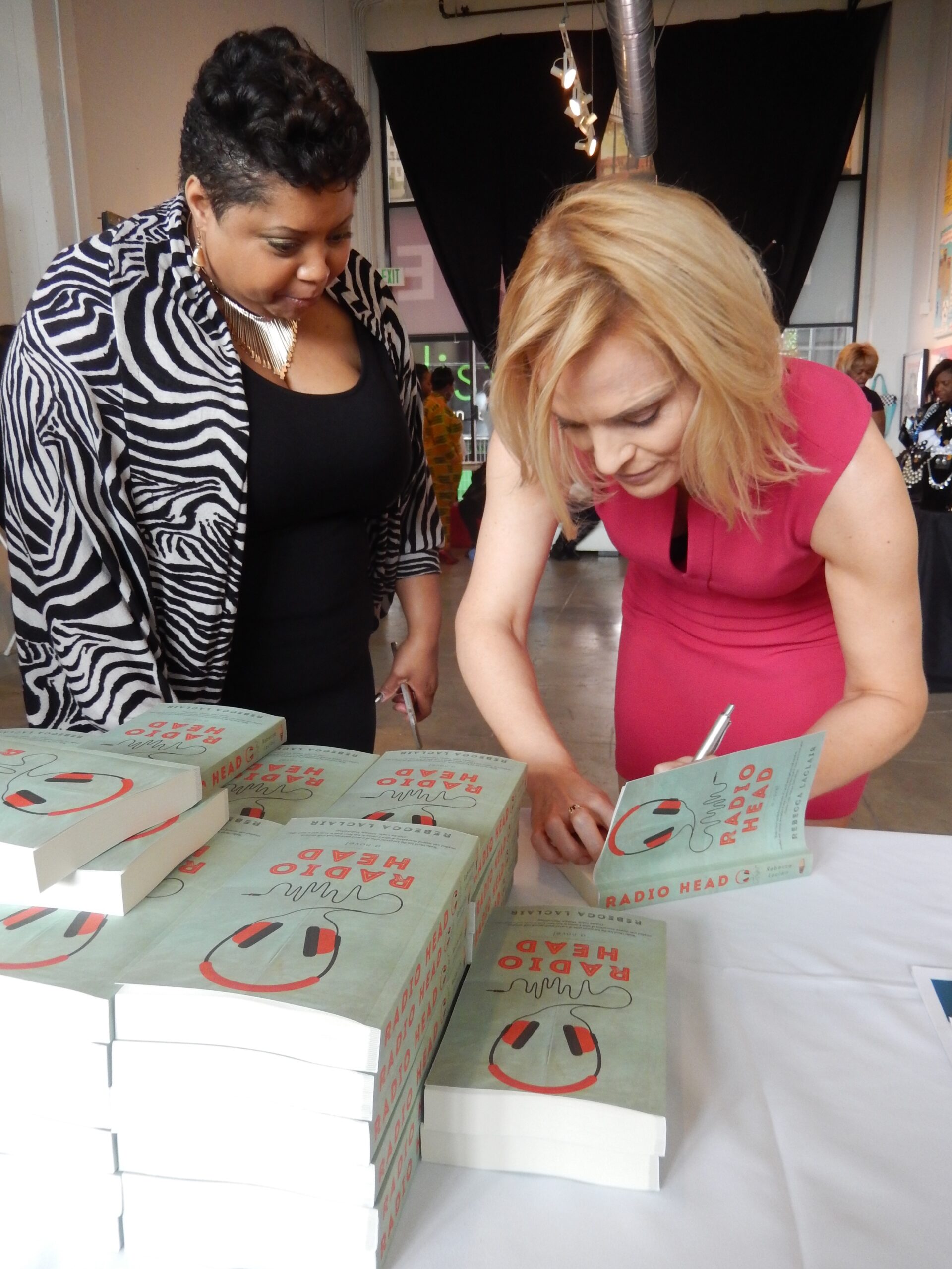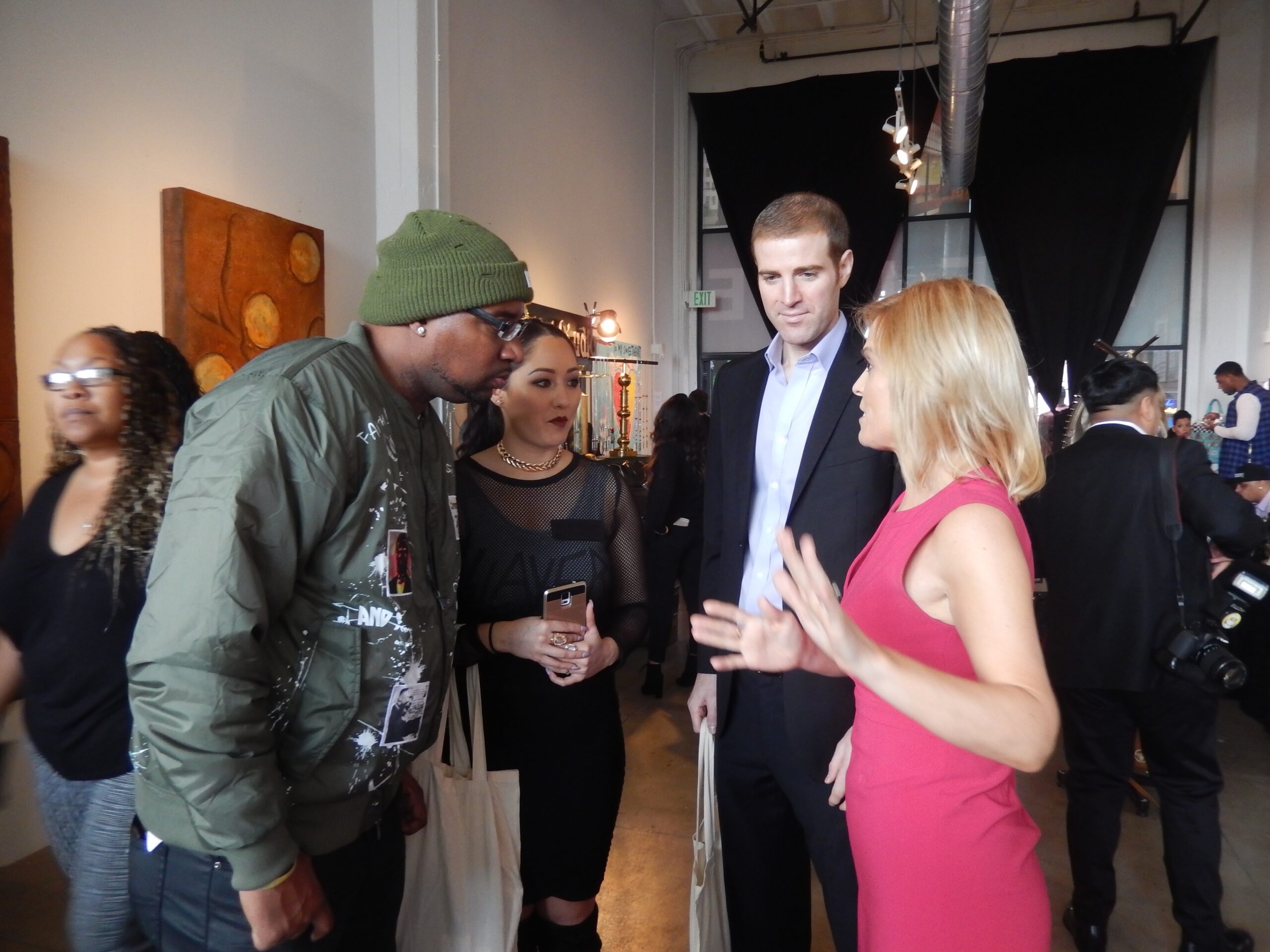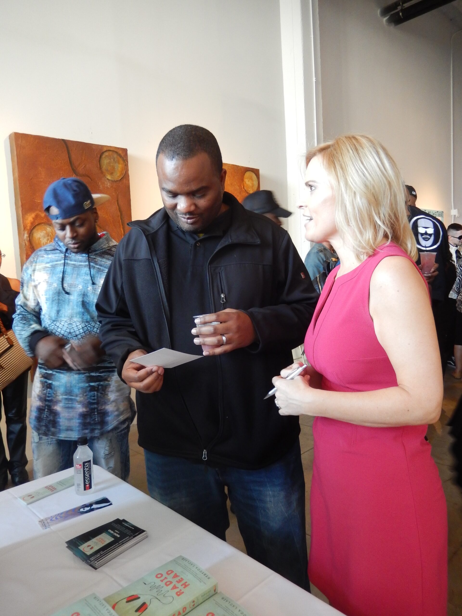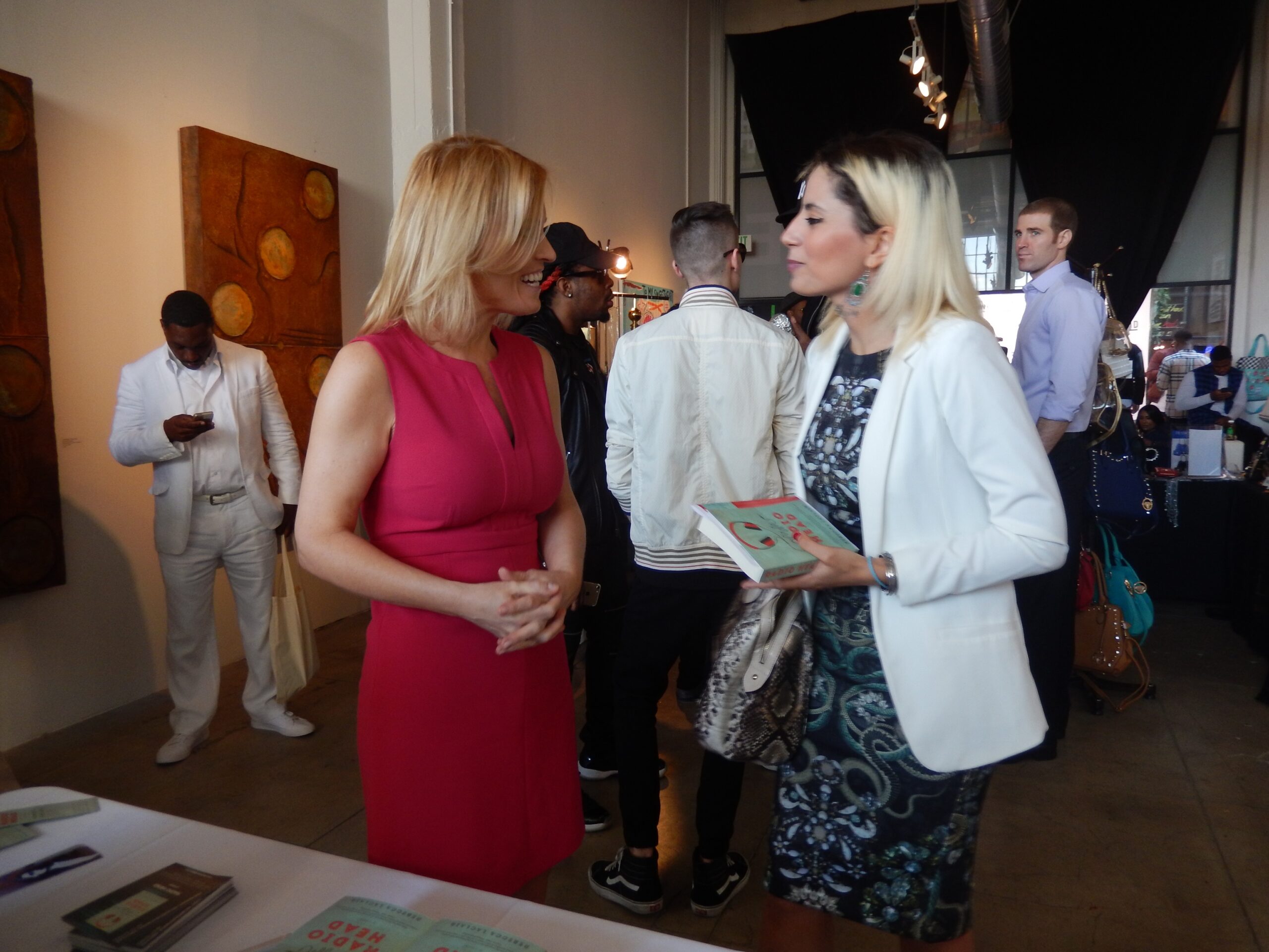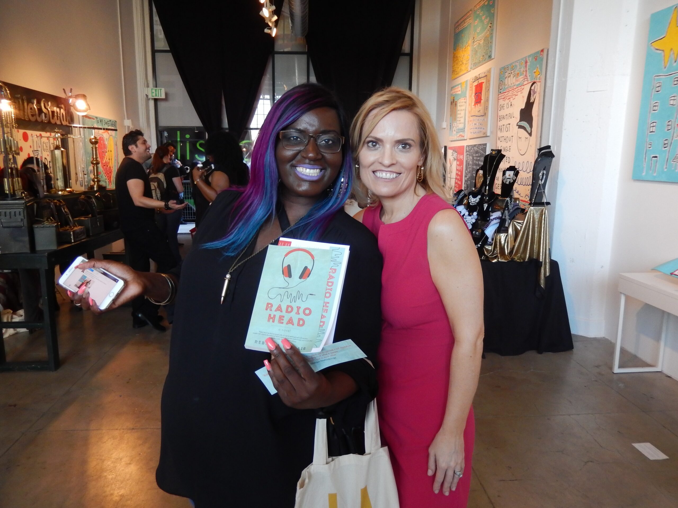 Who is the ideal audience for a novel offering an insider’s look at the dark reality of the LA rock music scene? Music fans in LA, of course! To celebrate the 2017 Grammy Awards, I had the honor of presenting my debut book, Radio Head, to Grammy nominees, recording artists, music press, producers, and a fascinating group of actors, fashion designers, artists and models. Hosted by European TV host Nana Churcher, the high energy event was held at REN Gallery in downtown Los Angeles on the eve of the awards ceremony. My pen name appeared on the backdrop of the red carpet – how cool is that?! The DJ kept the music pumping, and the vibe was positive. My dear fri
